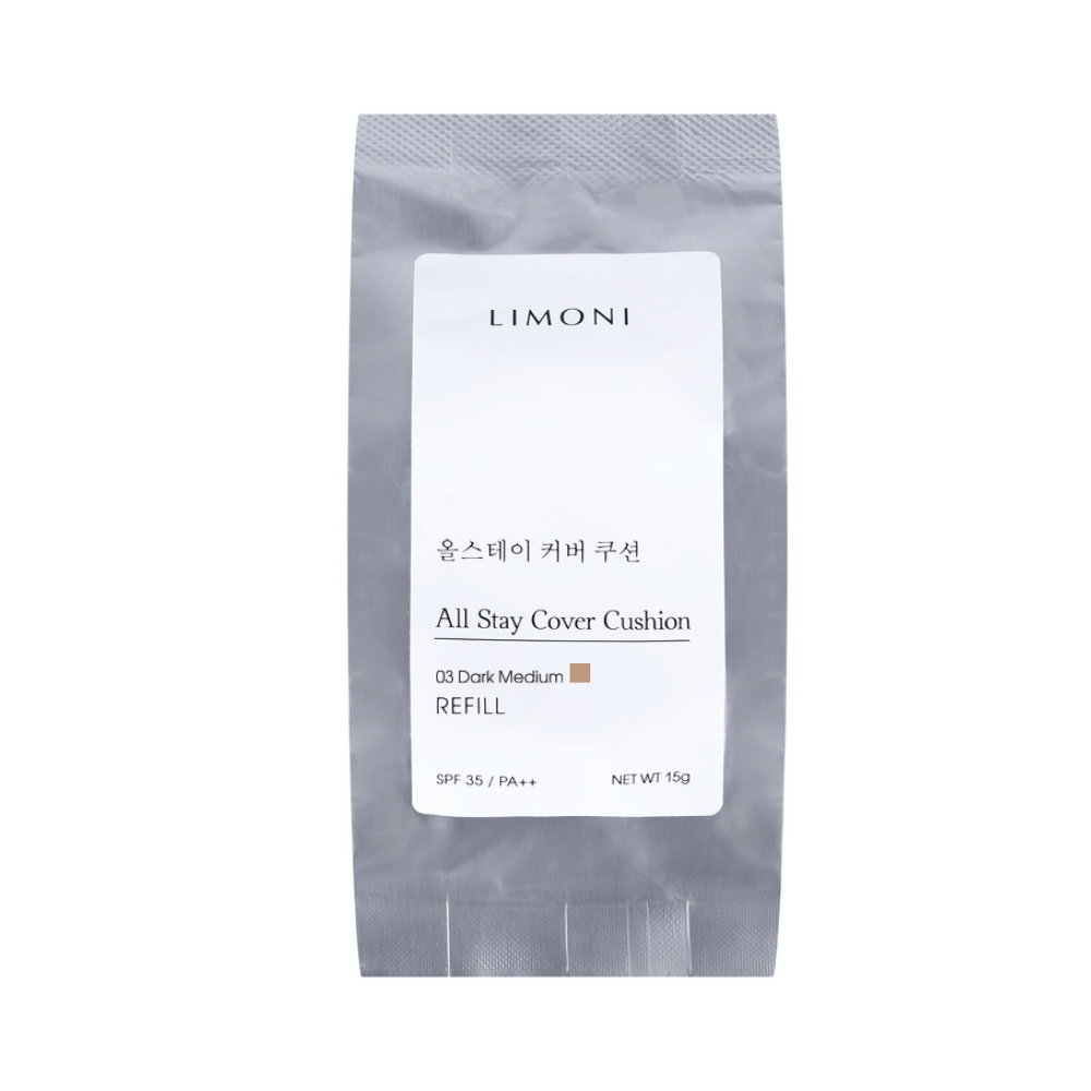LIMONI Тональный флюид кушон All Stay Cover Cushion SPF 35 / PA++ Refill 03 Dark Medium, Корея (Сменный блок)