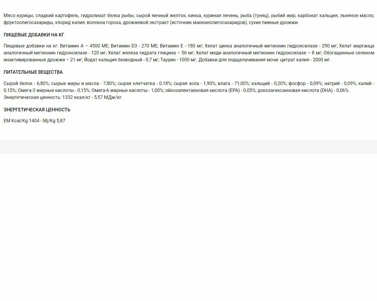 | Тип корма | влажный |