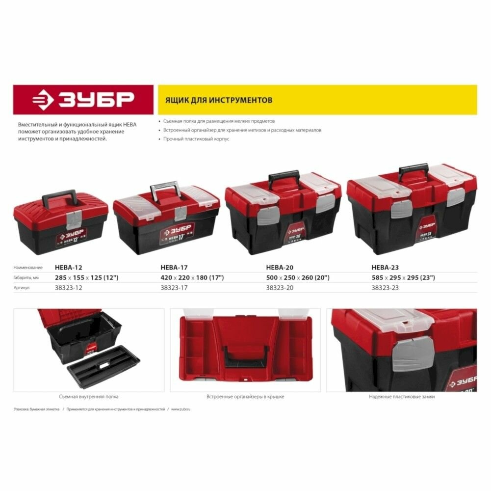 ЗУБР НЕВА-20, 500 х 250 х 260 мм, (20″), пластиковый ящик для инструментов (38323-20)