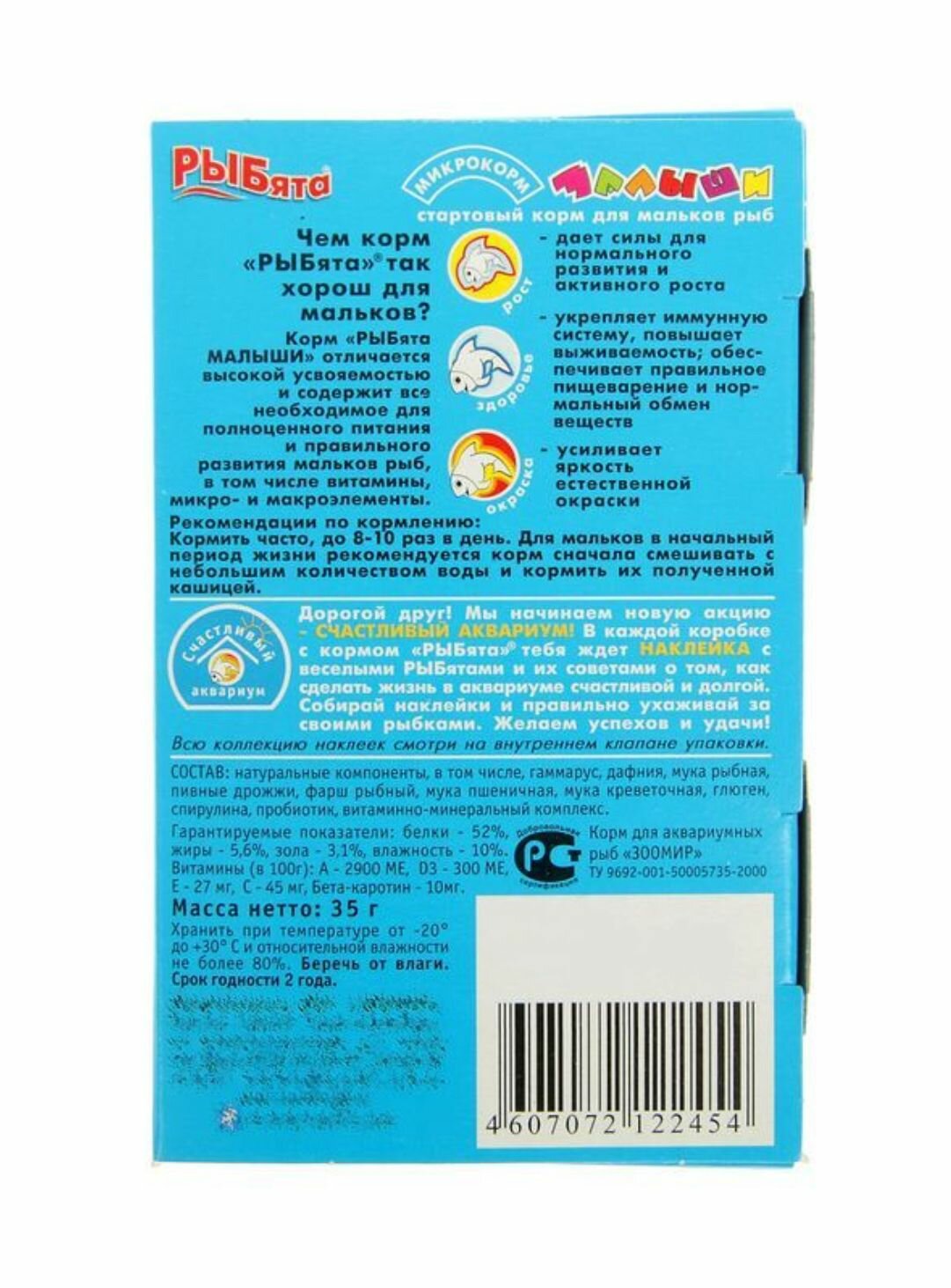 Корм стартовый "РЫБята Малыши" (+ сюрприз) для мальков и мелких рыб, 35 г