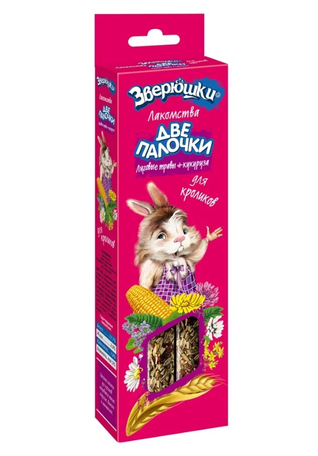 Зверюшки зерновые палочки для кроликов луговые травы и кукуруза 2шт