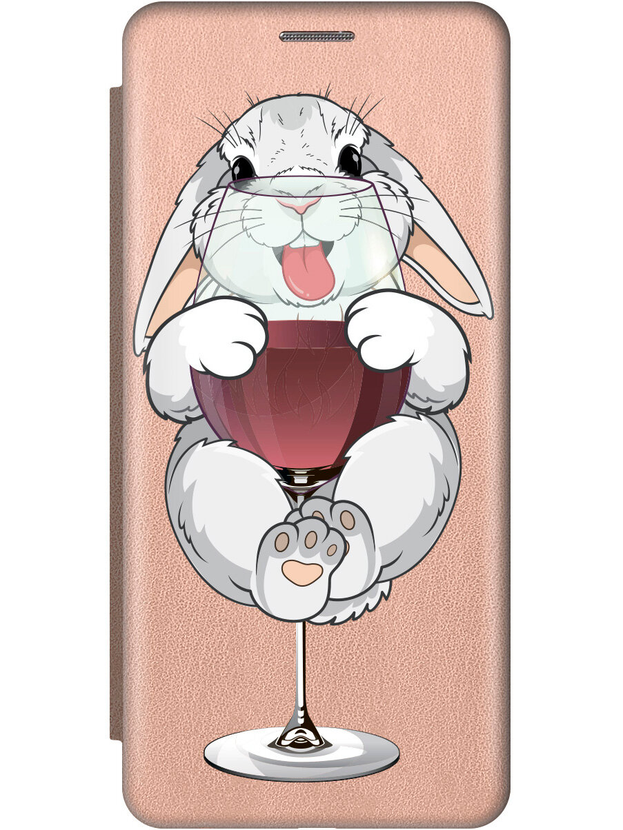 Купить Чехол-книжка на Infinix Hot 30 с принтом "Кролик и бокал" золотой