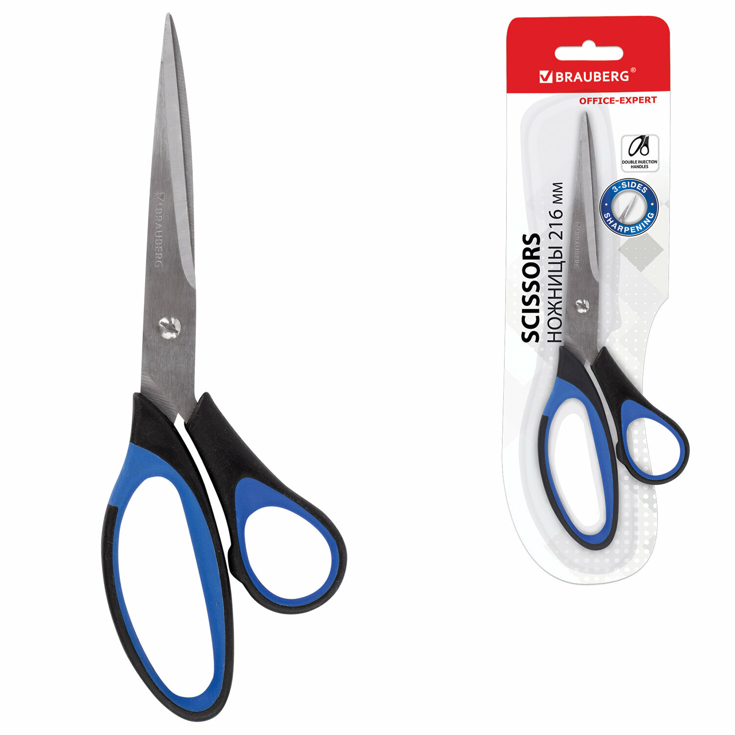 Ножницы BRAUBERG "Office-Expert" 216 мм, сине-черные, резиновые вставки, 3-х сторонняя заточка, 231563 Комплект - 2 шт.