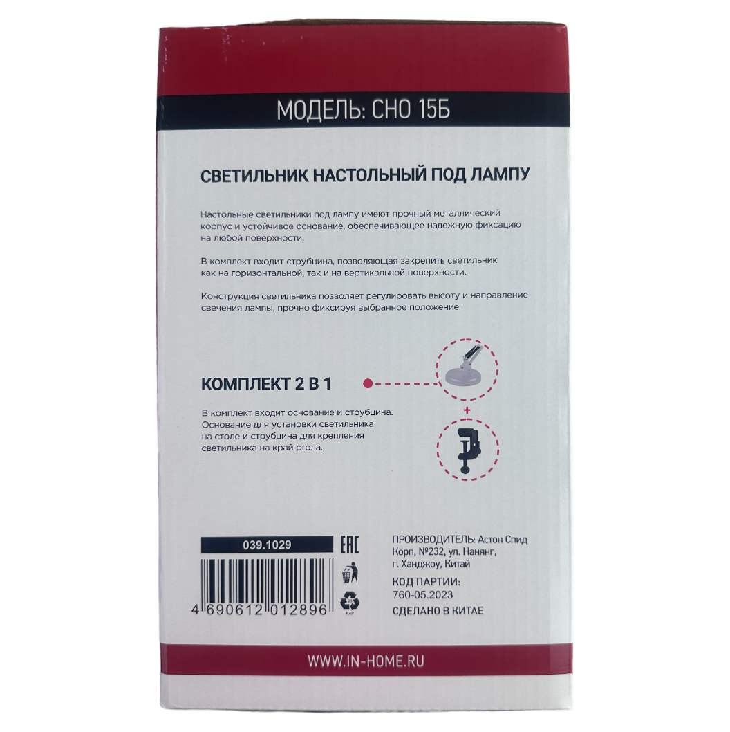 СохранитьСветильник настольный под лампу СНО-15Б на основании 60Вт E27 бел. (коробка) IN HOME 4690612012896 (6шт.в упак.) интересное: