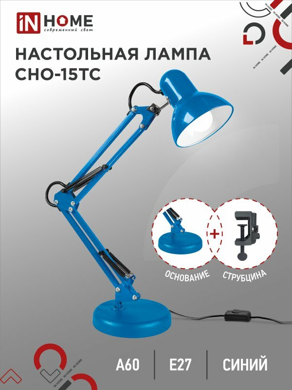Купить Светильник настольный под лампу на основании + струбцина СНО 15ТС 60Вт E27 230В синий IN HOME