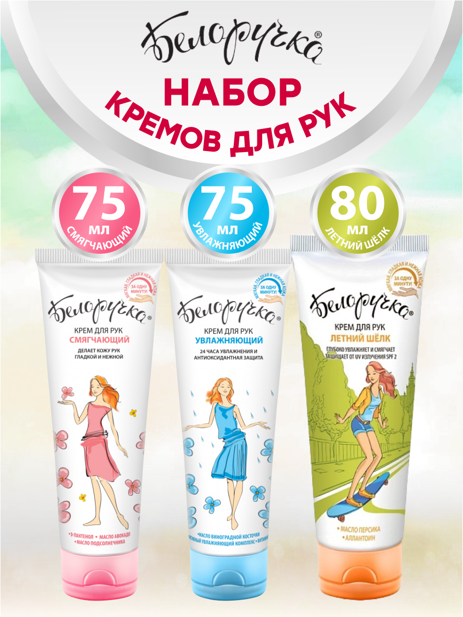 Купить Набор кремов для рук Белоручка Смягчающий 75 мл.+Увлажняющий 75 мл.+Летний шелк 80 мл.