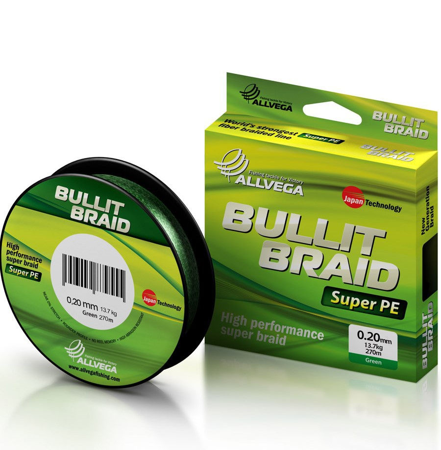 Купить Плетеный шнур Allvega Bullit Braid 270м 0,20мм 13, 7кг, темно-зеленая