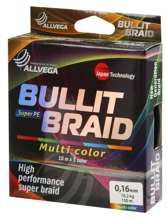Купить Плетеный шнур Allvega Bullit Braid Multi Color 150м 0,16мм, 10,2кг
