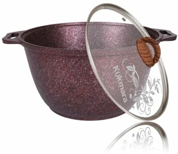 Кастрюля KUKMARA Granit ultra, 8 л, стеклянная крышка, антипригарное покрытие, коричневый мрамор