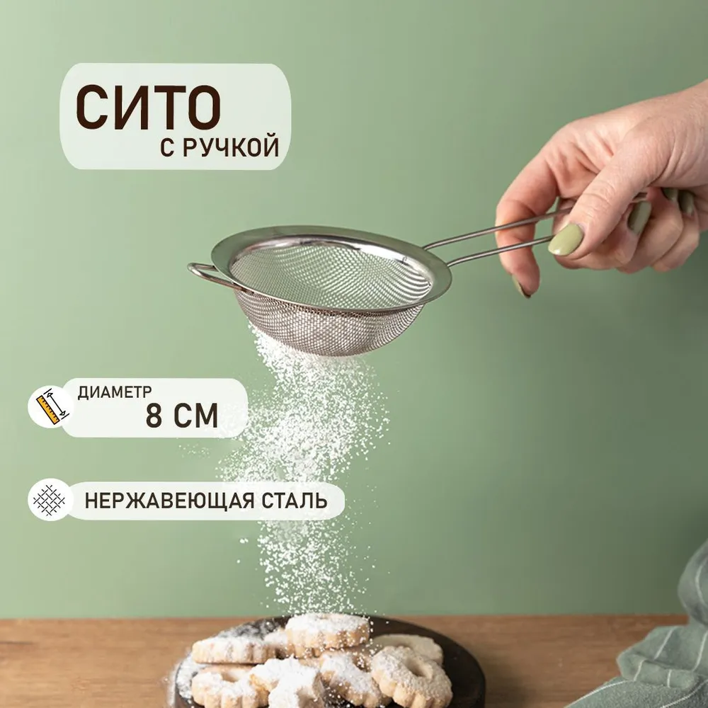 Сито для муки 8 см, сыпучих продуктов с ручкой VETTA нержавеющая сталь