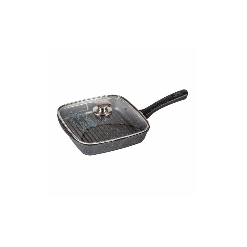 Сковорода-гриль квадр. "Мечта" 26*26см Гранит с антипригарным покрытием с несъемной ручкой и крышкой, можно мыть в посудомоечной машине