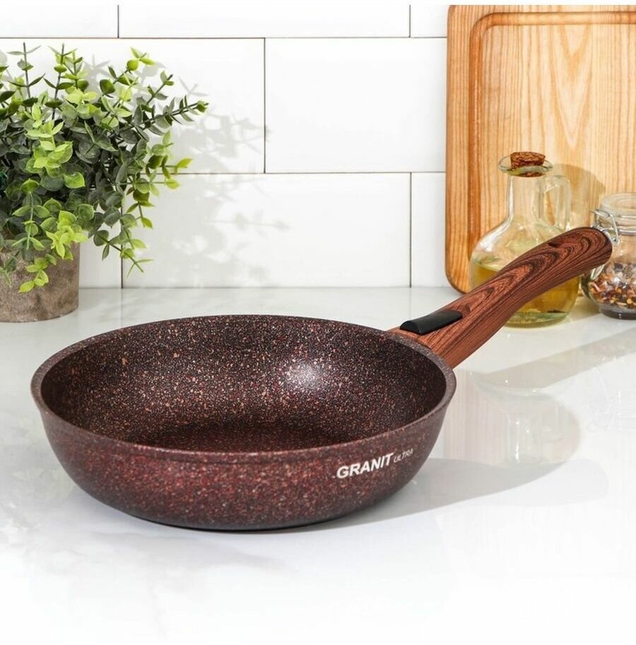Сковорода Granit Ultra original, d=22 см, пластиковая ручка, антипригарное покрытие, цвет тёмно-кори .