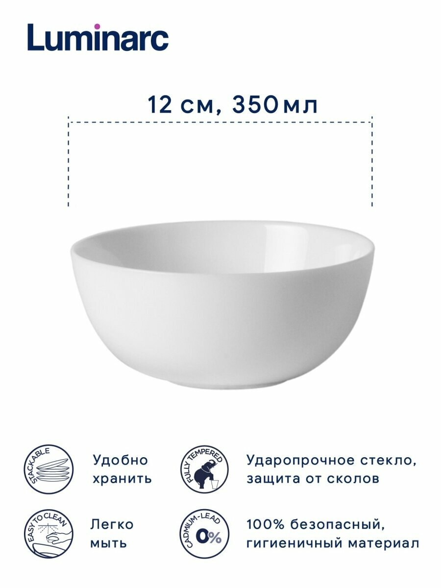 Luminarc Салатник Diwali, 12 см, 0.4 л, 1 шт., белый
