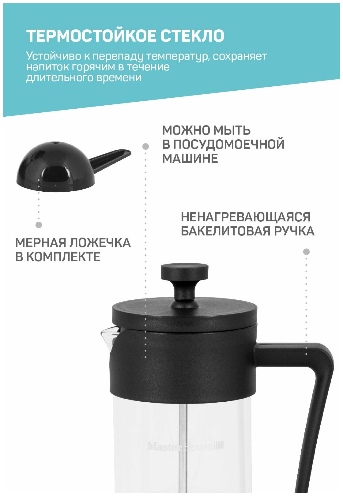 Френч-пресс Барселона с мерной ложкой Master House 60403, 600 мл