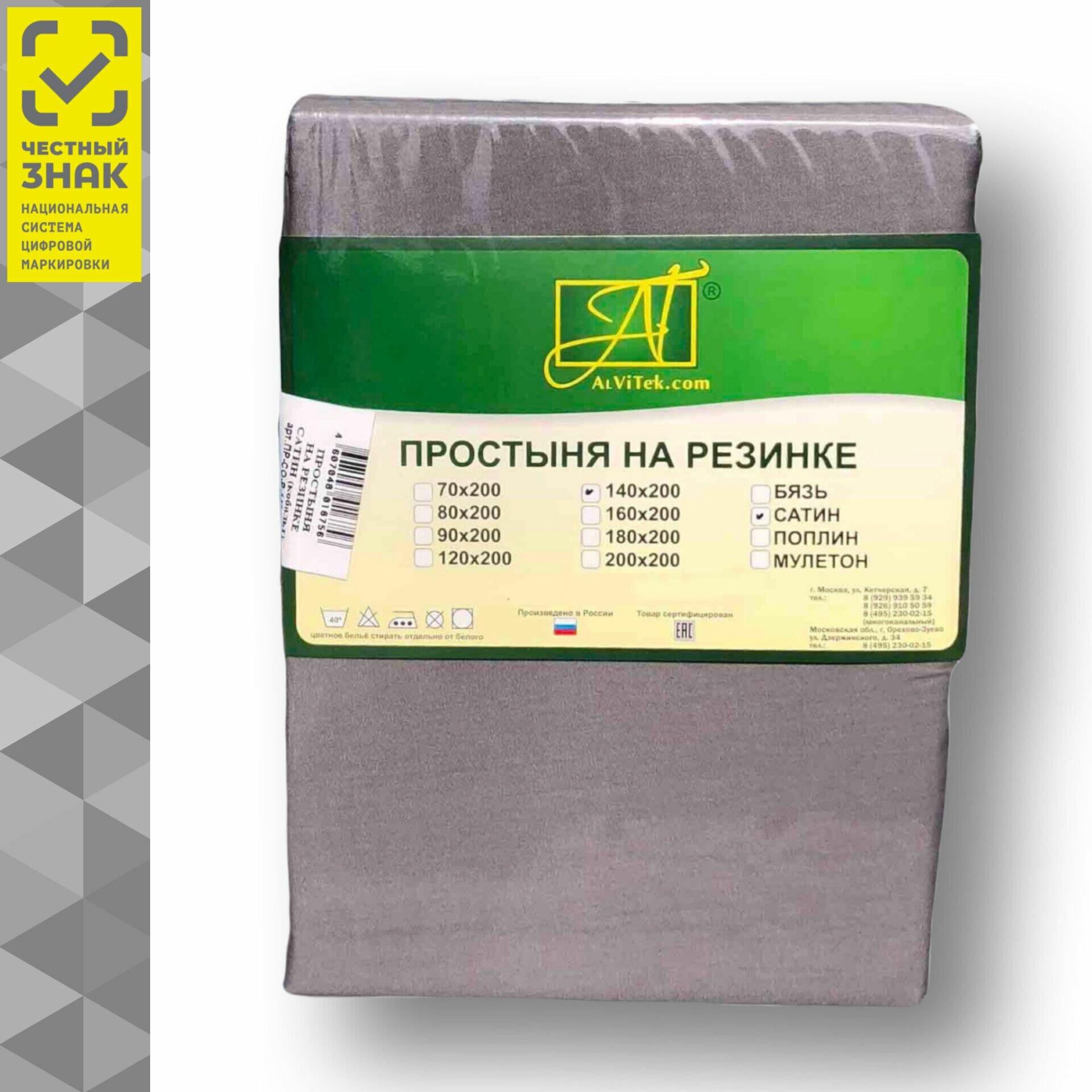 Простыня Альвитек сатин на резинке, 140х200+25, стальной