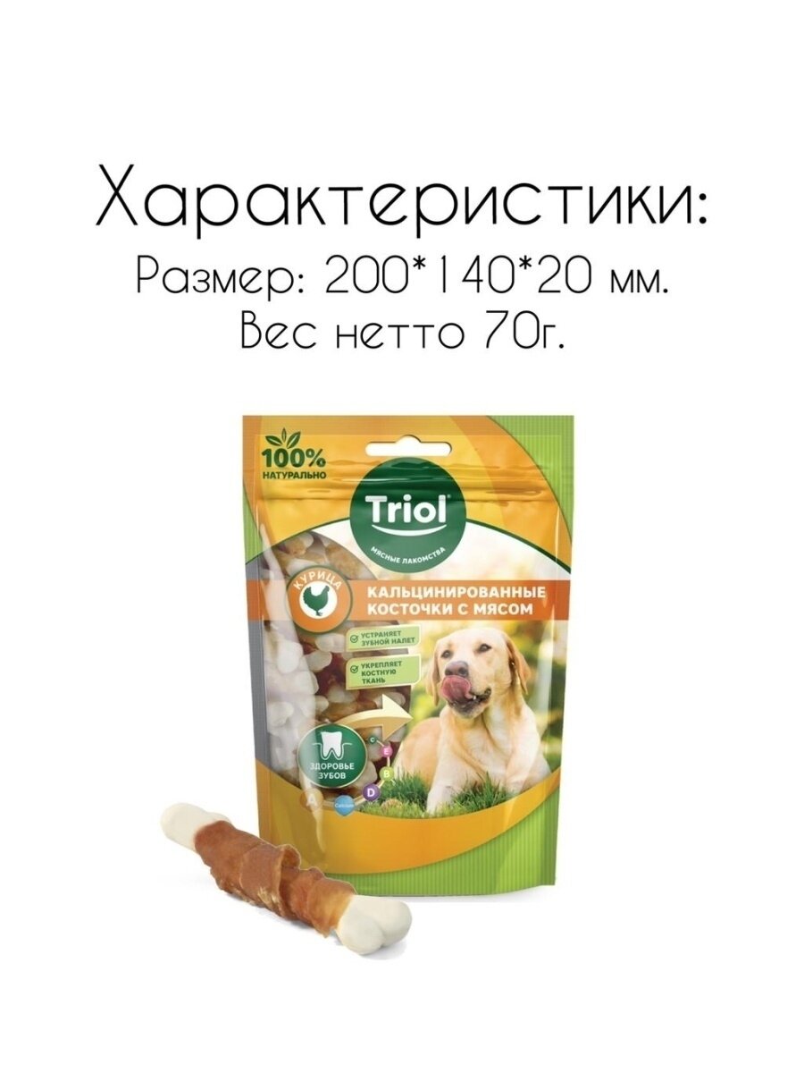 Triol лакомство для взрослых собак всех пород, косточки с кальцием с курицей 70 гр