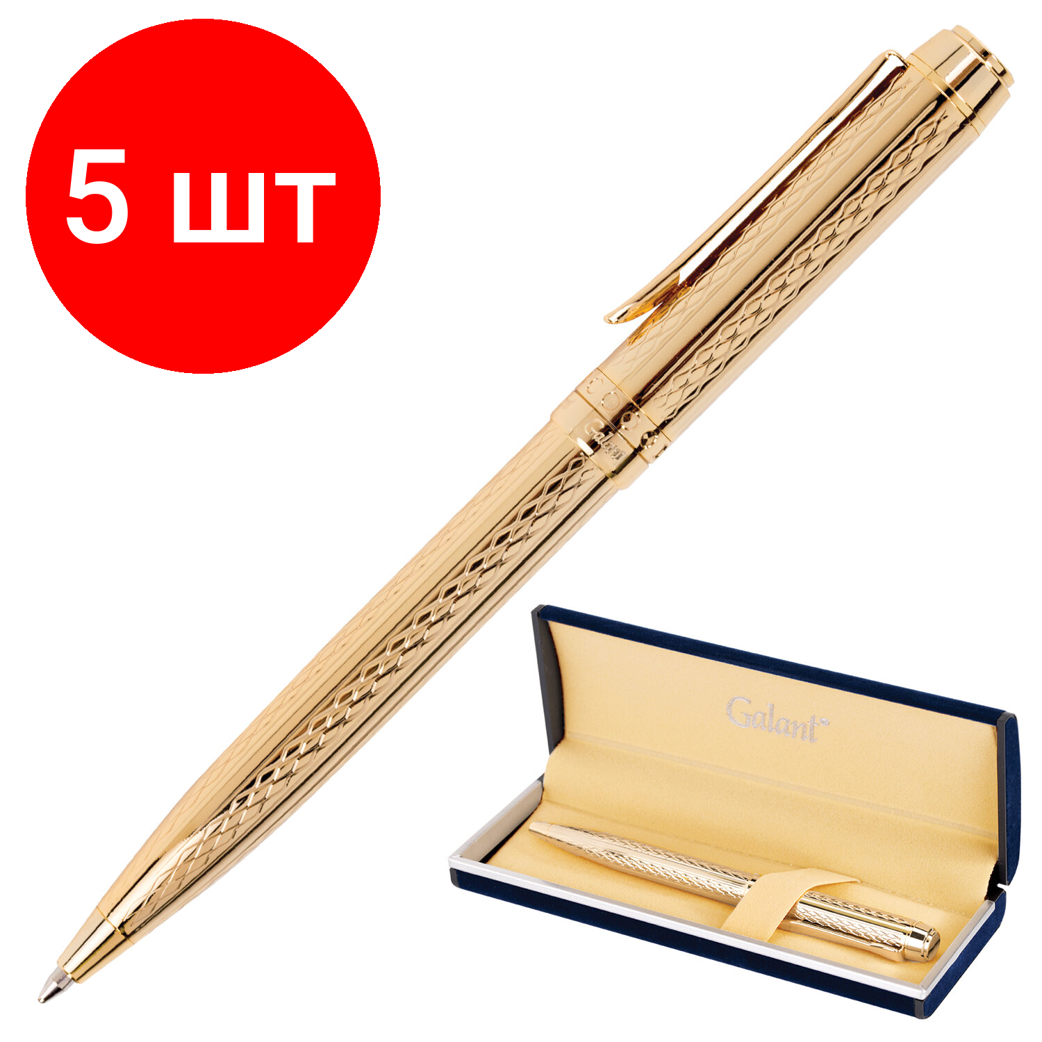 Купить Комплект 5 шт, Ручка подарочная шариковая GALANT "Graven Gold", корпус золотистый с гравировкой, золотистые детали, пишущий узел 0.7 мм, синяя, 140466