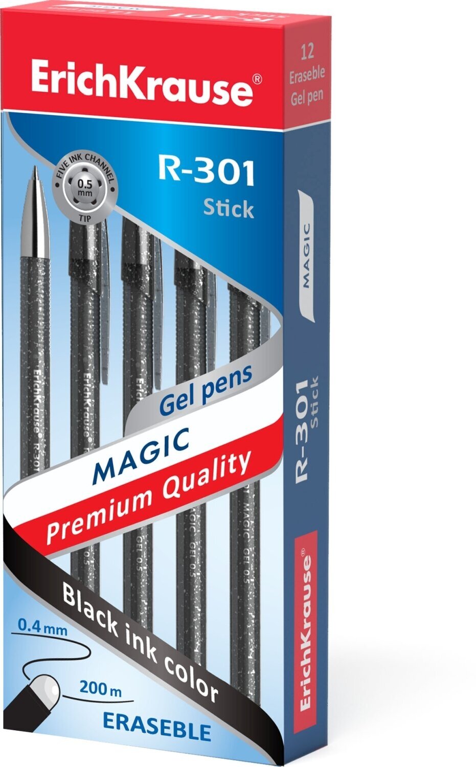 Ручка гелевая стираемая Erich Krause R-301 Magic Gel, узел 0.5 мм, чернила чёрные, длина письма 200 м, цена за 1 шт, 12 штук