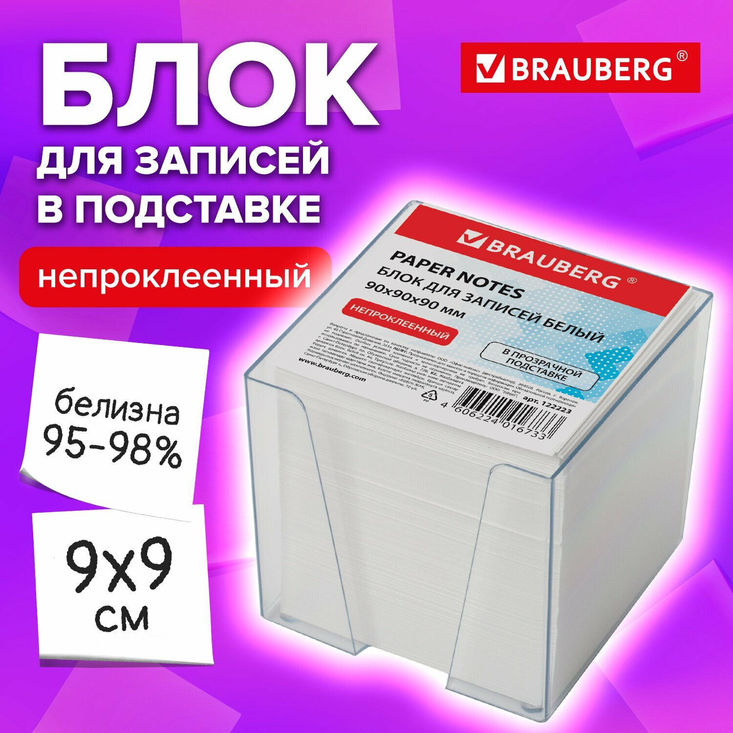 СохранитьКомплект 9 шт, Блок для записей BRAUBERG в подставке прозрачной, куб 9х9х9 см, белый, белизна 95-98%, 122223 интересное: