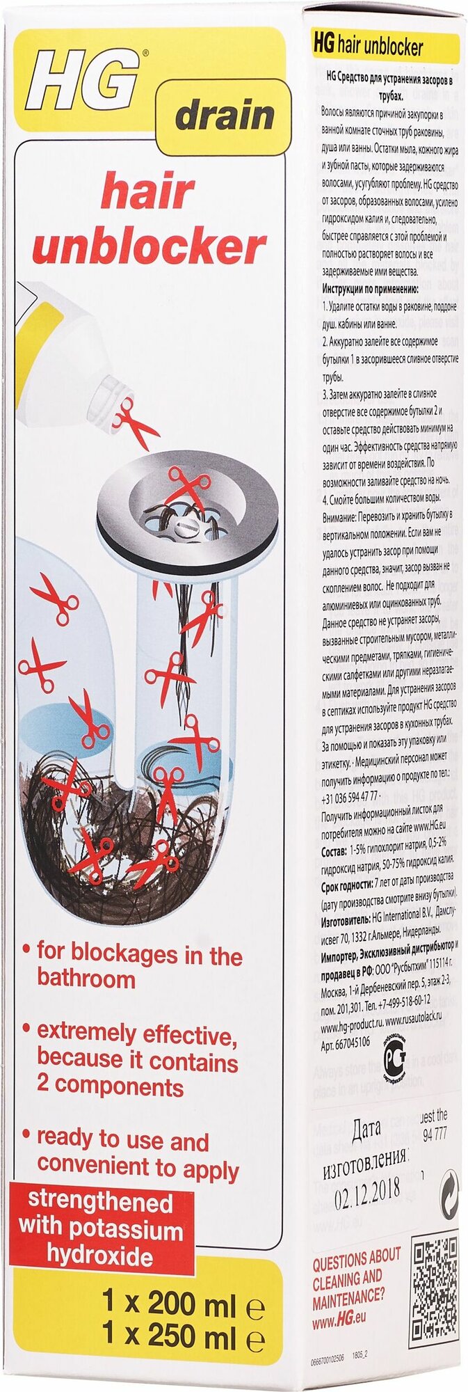 HG Hair Unblocker Средство для устранения засоров в трубах 2-ухкомпонентное 200 + 250 мл