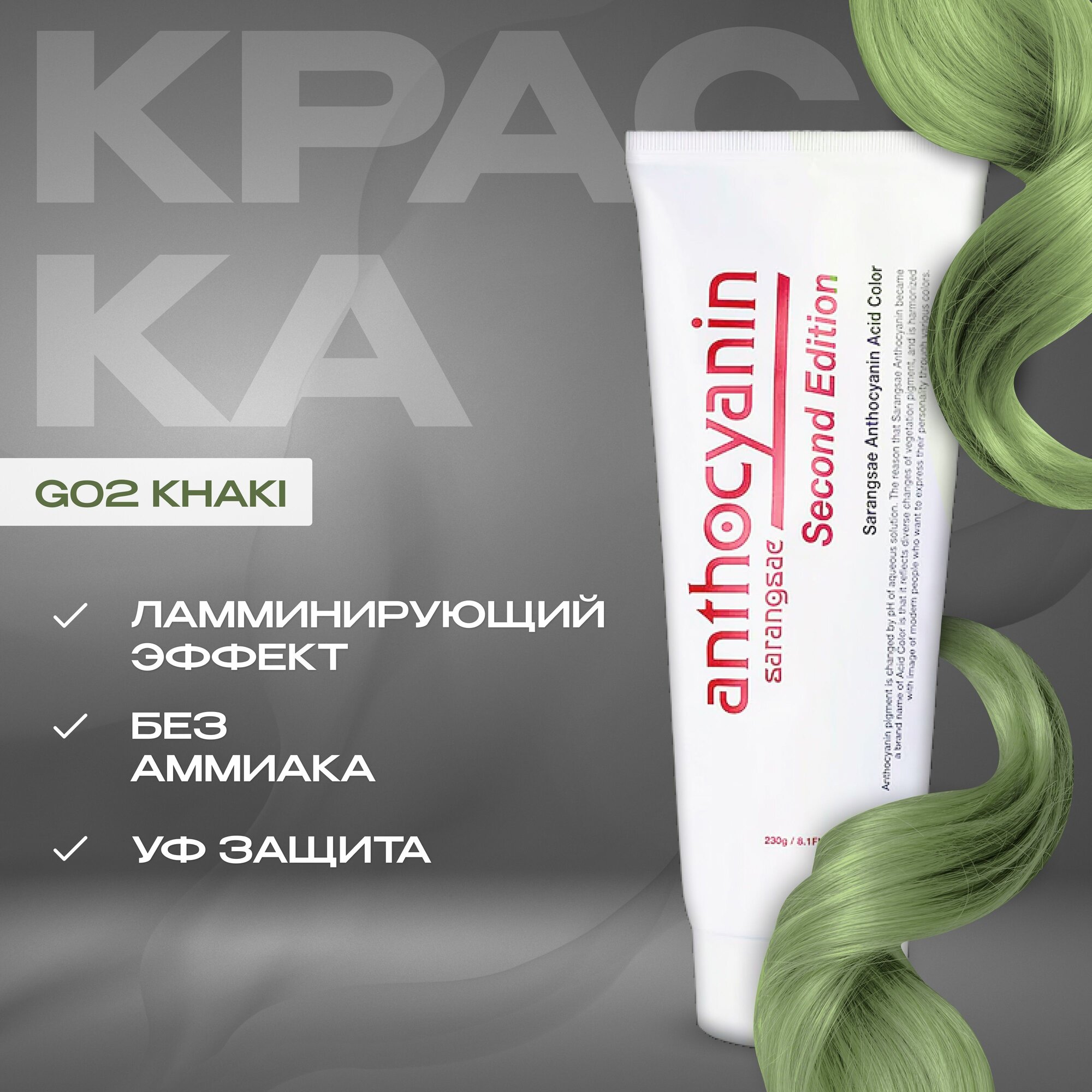 Купить Anthocyanin Краска для волос хаки G02 Khaki 230 мл ламинирующая без аммиака профессиональная