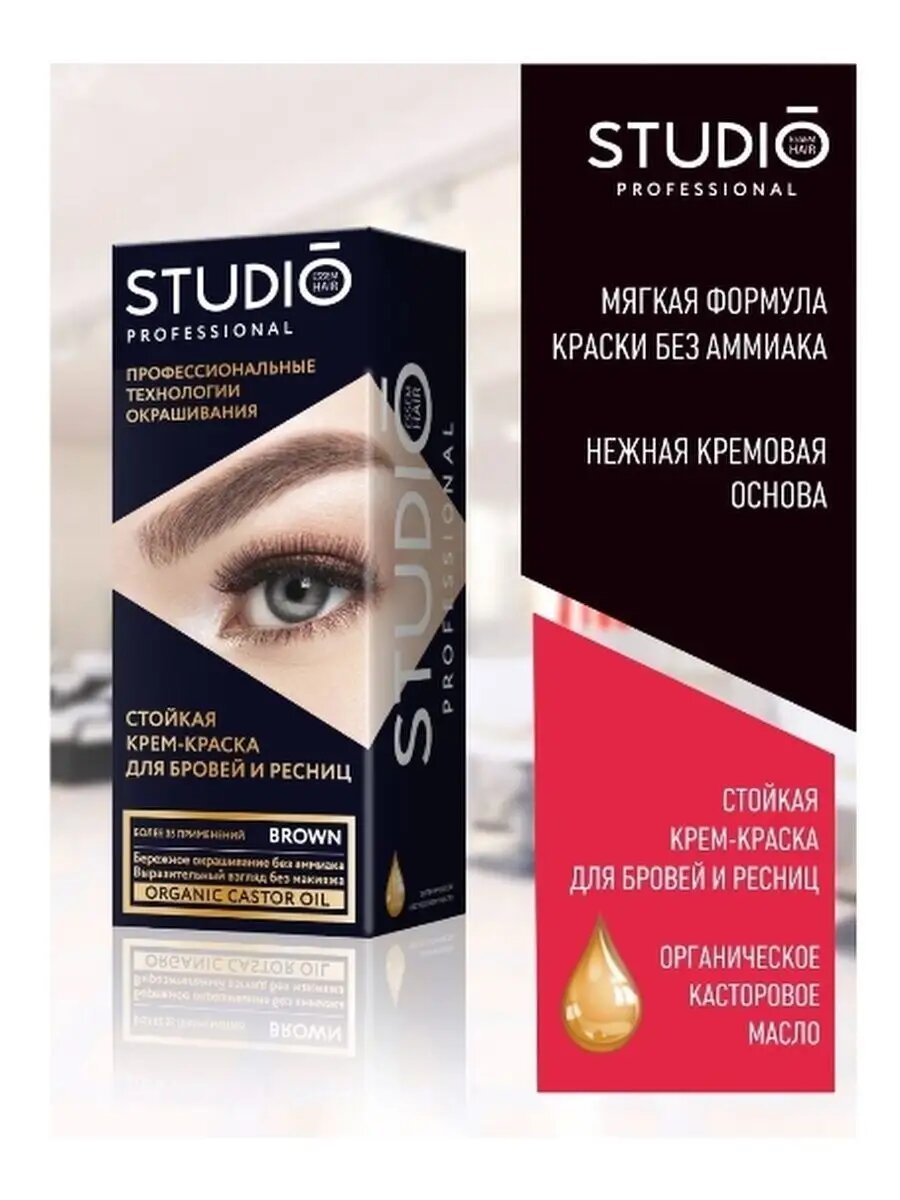 Крем-краска стойкая Studio Professional для бровей и ресниц, коричневый, 50 мл + оксид, 30 мл