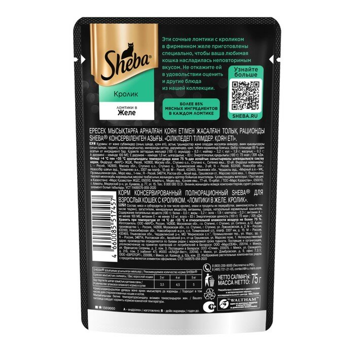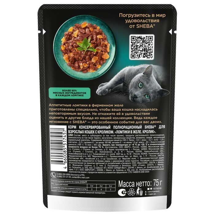 Ниже Вы можете прочитать отзывы на Шеба 10248078/10288417 пауч для кошек ломтики в желе Кролик 75г, ознакомится с подробными характеристиками, посмотреть интересные обзоры и фотографии на Шеба 10248078/10288417 пауч для кошек ломтики в желе Кролик 75г.