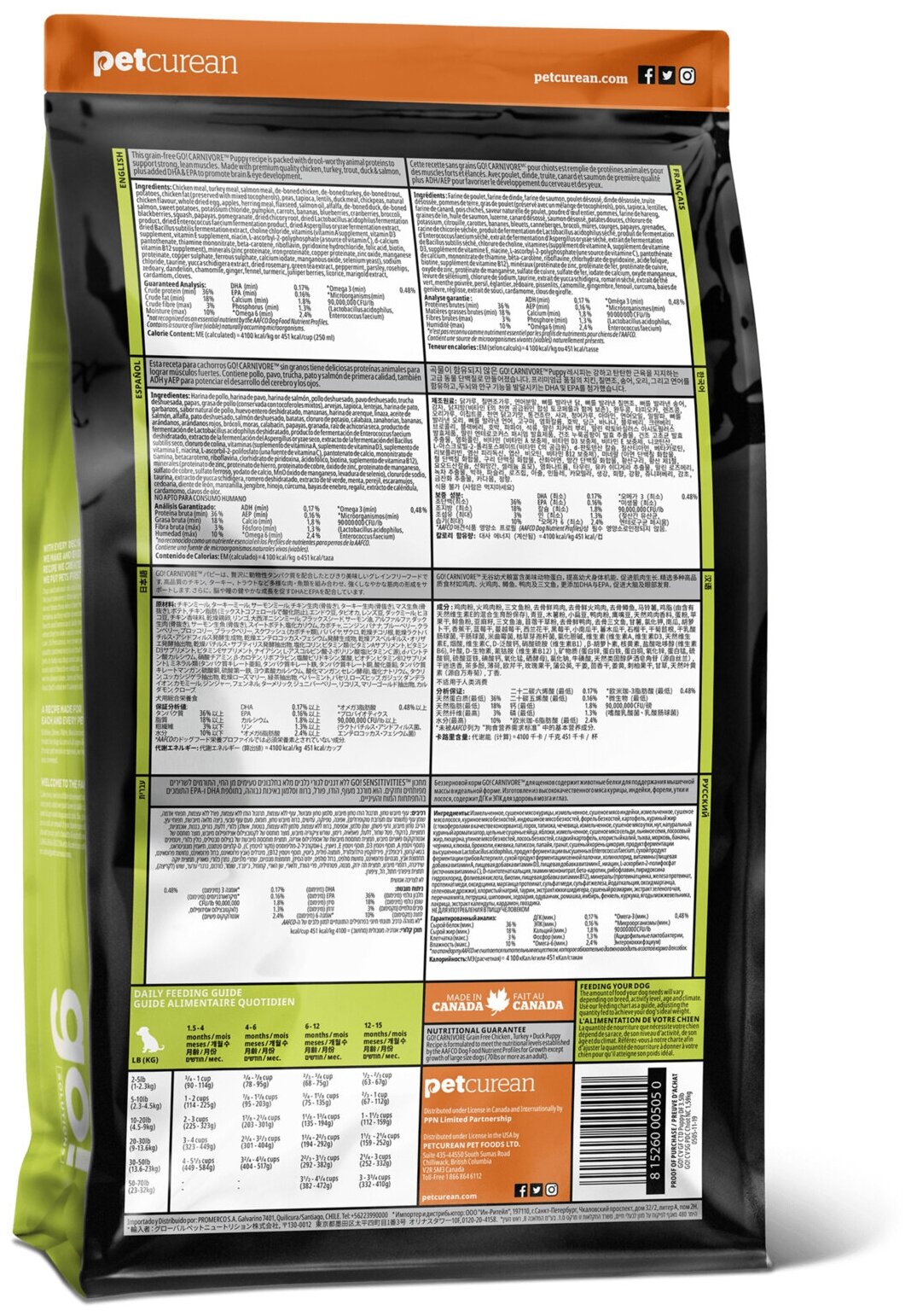 GO! для Щенков всех пород 4 вида мяса: Индейка, Курица, Лосось, Утка (GO! CARNIVORE GF Chicken,Turkey + Duck Puppy Recipe DF) 9,98 кг