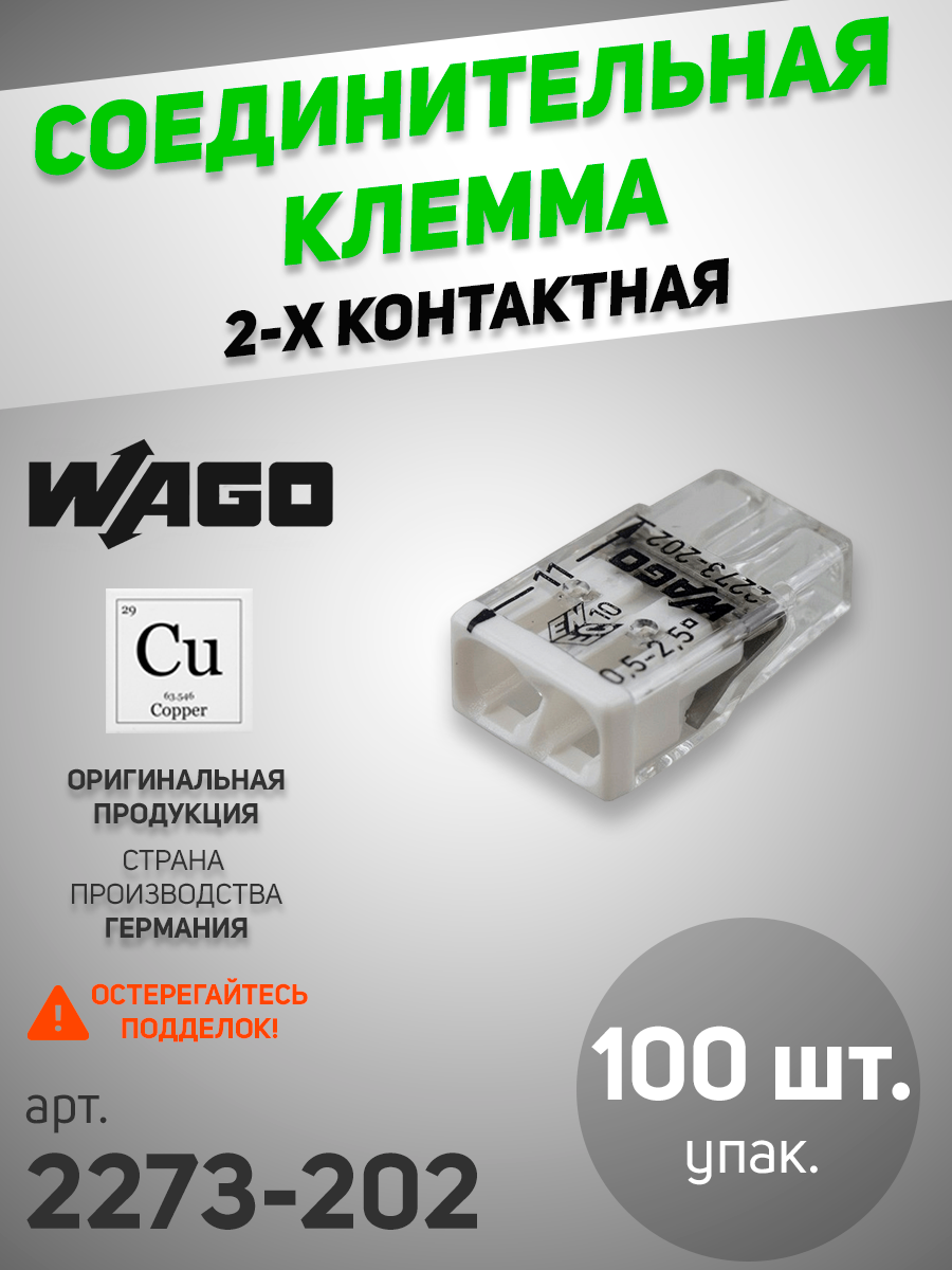 Клемма 2273-202 WAGO без контактной пасты, 100 шт.