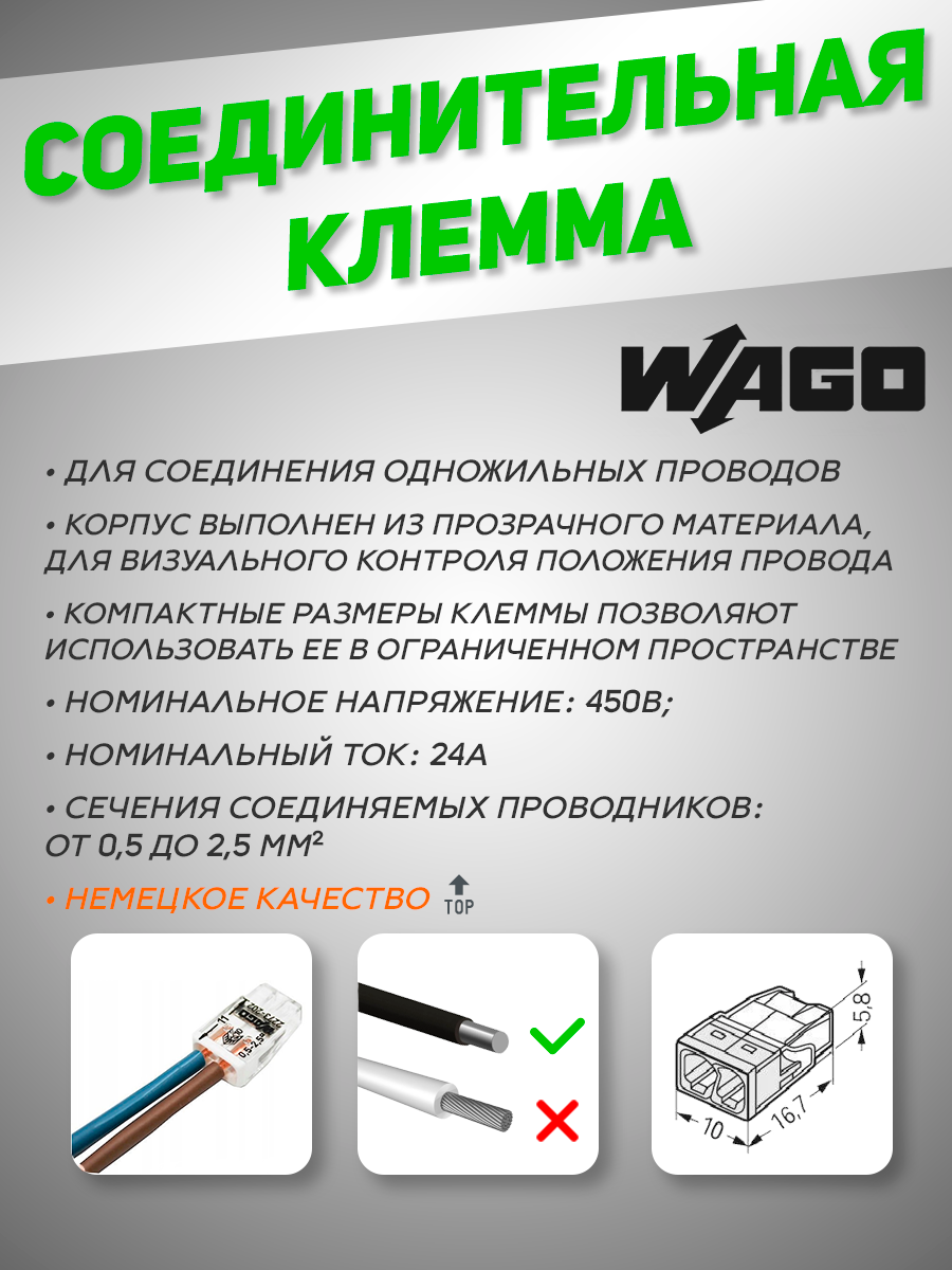 Компактная электромонтажная клемма WAGO 2-х проводная, 20 штук