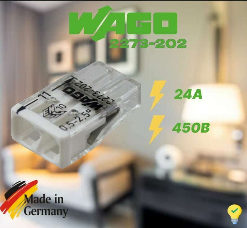Wago 2273-202 Экcпресс-клемма, 2-проводная до 2,5 мм², (100 шт./уп.) WAGO