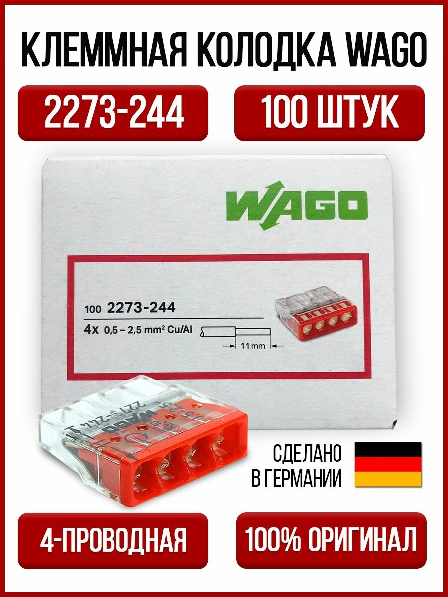 Клеммы Wago 2273-244 с контактной пастой, 4 контакта, 100 шт.
