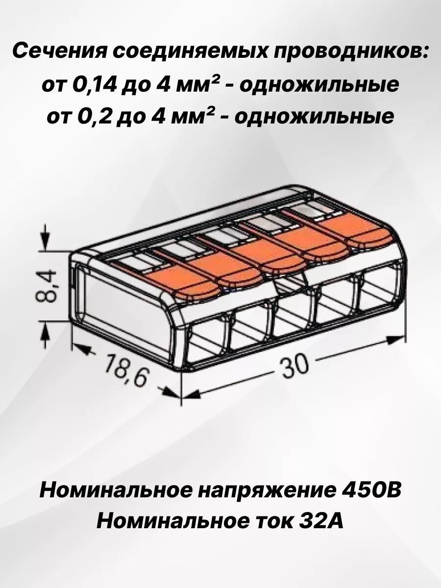 5 проводная клемма Wago 221-415, 30 шт