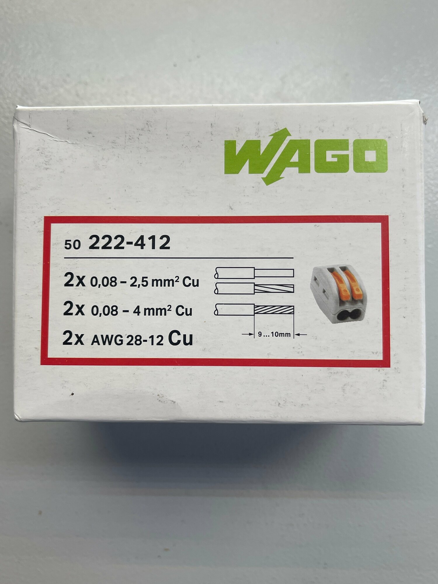 Клемма WAGO 222-412, двухконтактная, 10 шт