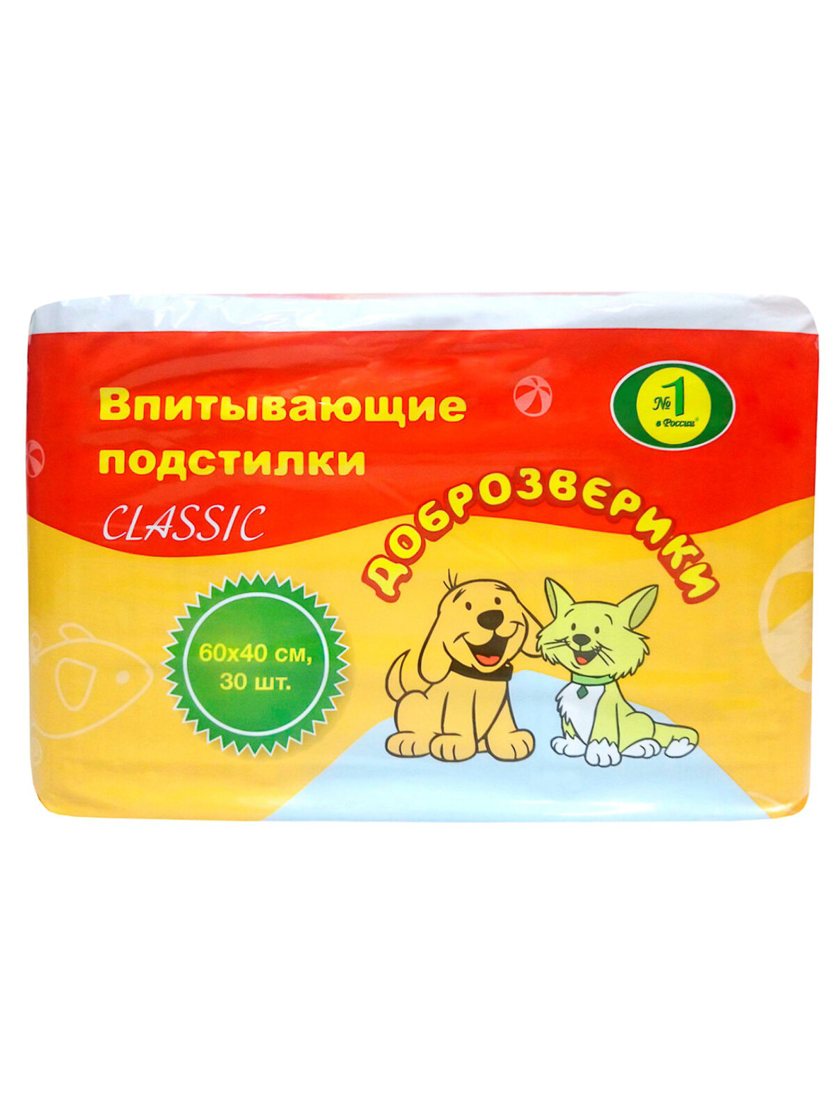 Доброзверики CLASSIC пеленки впитывающие для животных, 40 х 60 см (60 шт)