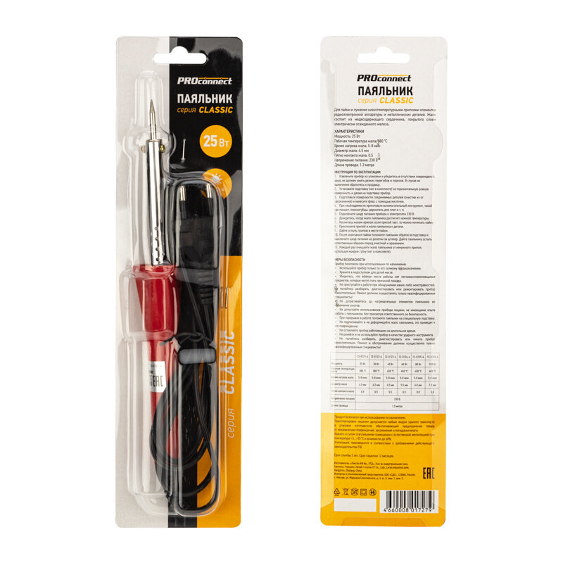 Паяльник долговечное жало 230В/25Вт Classic PROCONNECT 12-0121-4