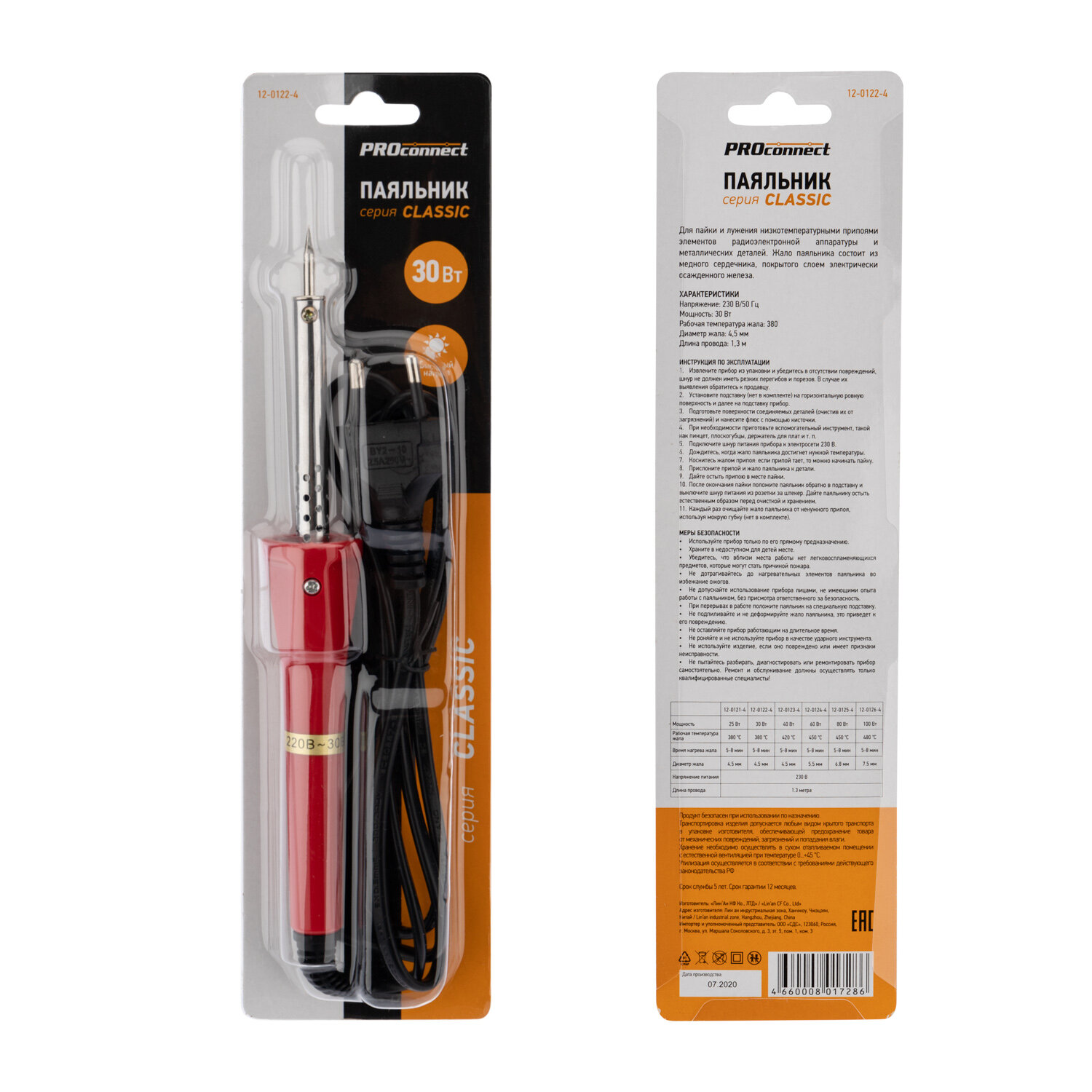 Паяльник долговечное жало, серия Classic, 30Вт, 230В, блистер PROconnect 1 шт арт. 12-0122-4