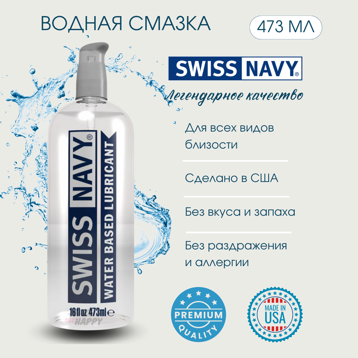 Swiss navy Water Based Lubricant, 473 г, 473 мл, 1 шт.