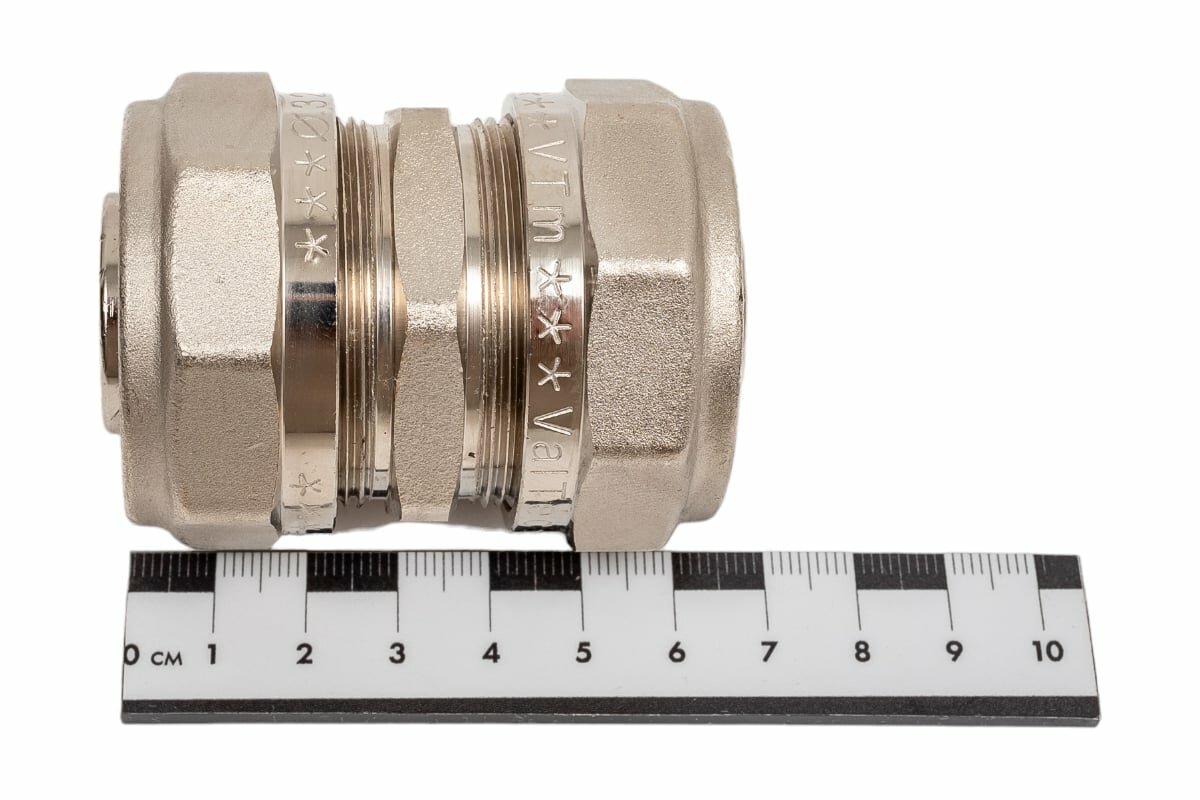 Фитинг обжимной 20 мм прямой для металлопластиковых труб 20x2,0 мм VALTEC VTm.303.N.002020 / Равнопроходное соединение латунное под обжим DN20