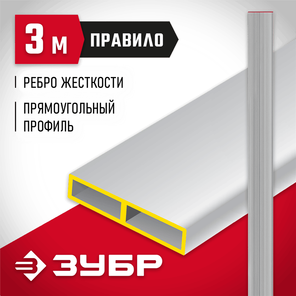 ЗУБР Правило ЗУБР "мастер" алюминиевое, прямоугольный профиль с ребром жесткости, 4,0м