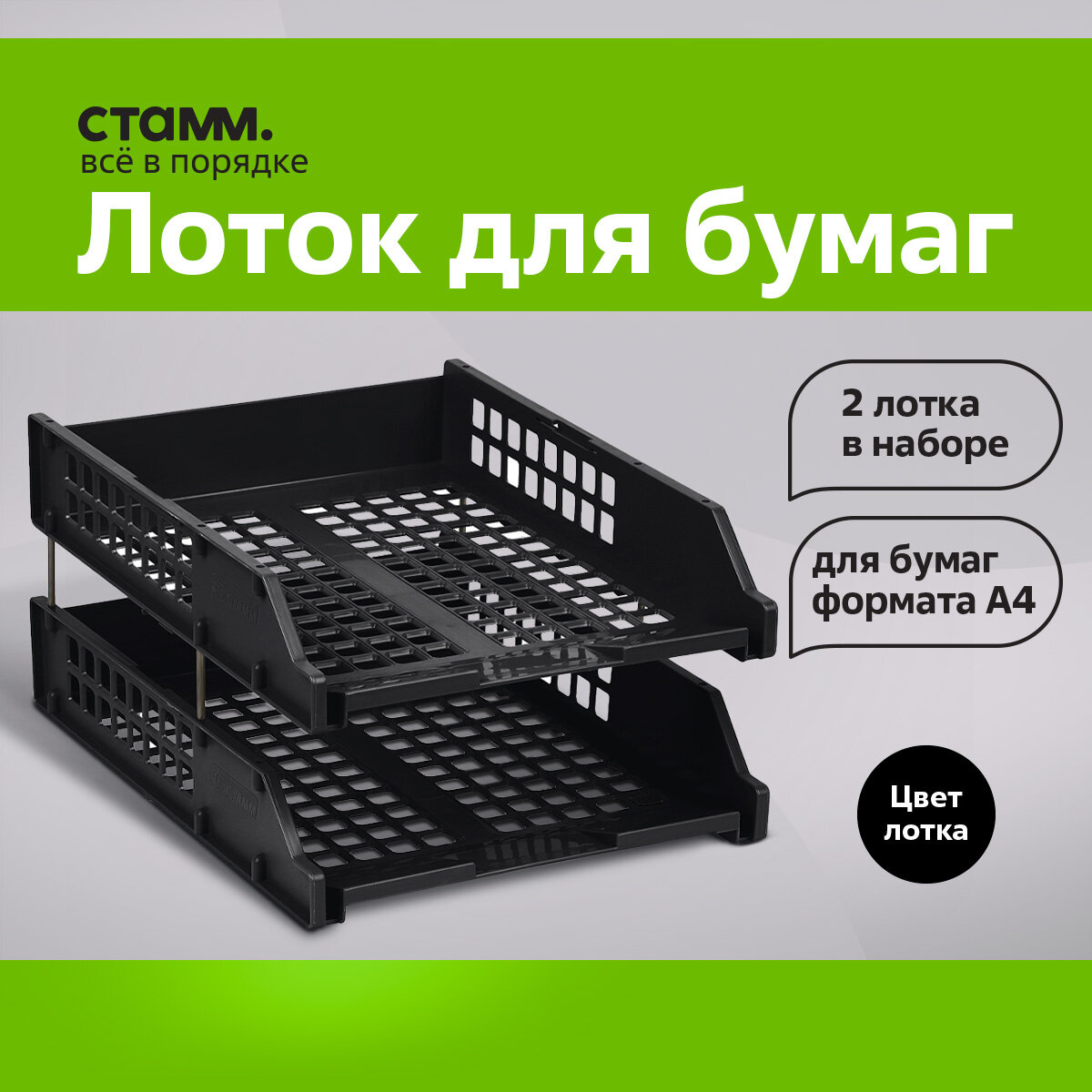 Набор лотков горизонтальных для бумаги СТАММ Strong черный 2 шт.