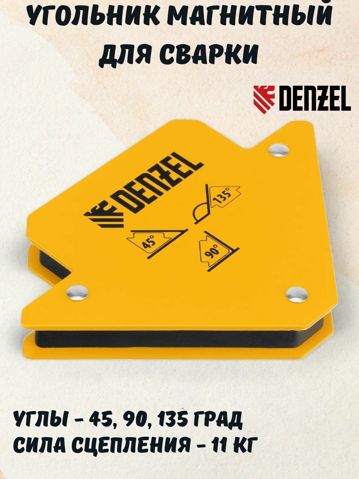 Магнитный угольник Denzel 97551, для сварочных работ, усилие 11 кг, 45, 90, 135°
