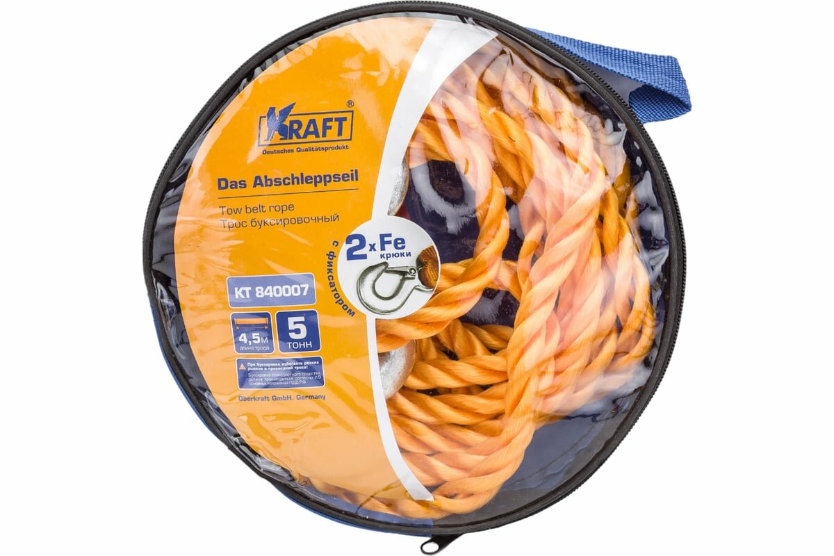 KRAFT KRAFT Трос буксировочный канатный 5 тонн в сумке 4,5 м (2 мет.кр.,полипропилен) KRAFT KT840007 KRAFT KT840007
