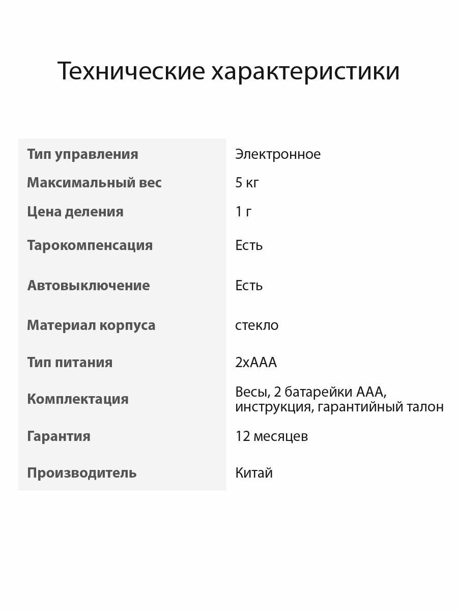 | Предел взвешивания | 5 кг |