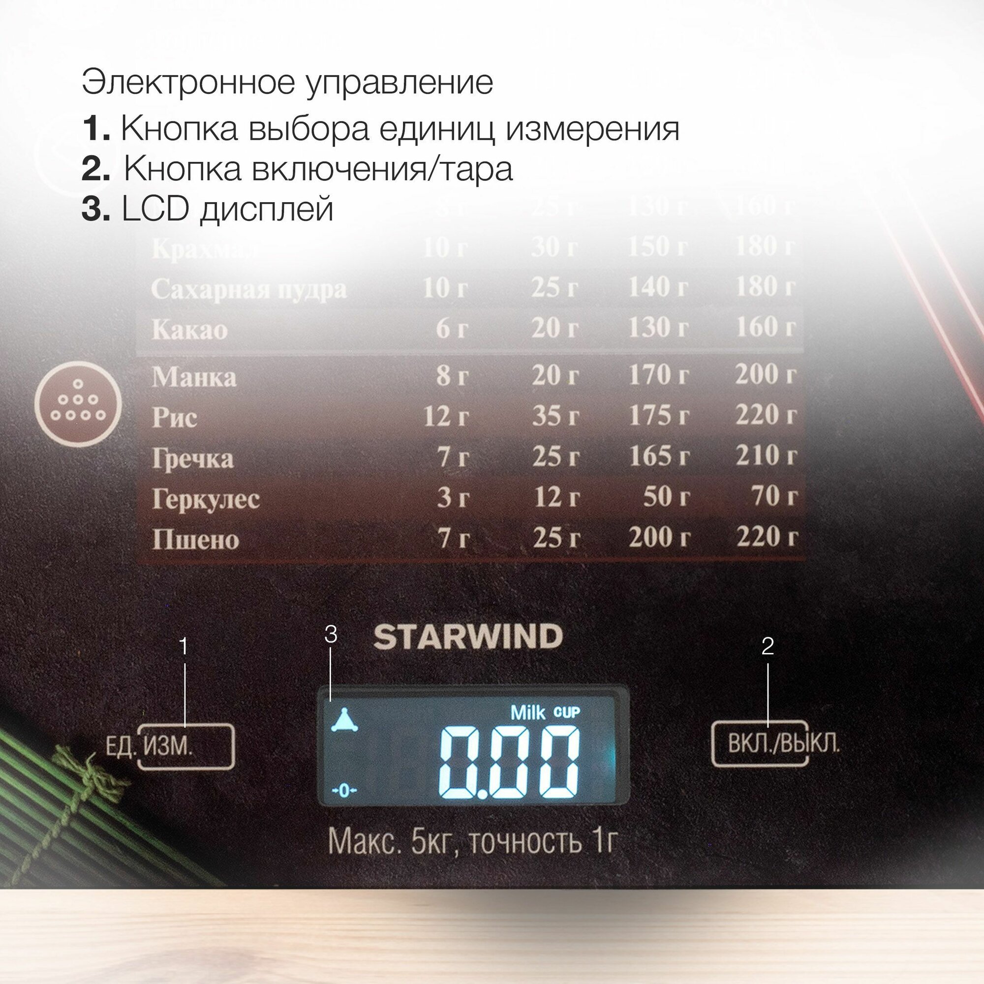 Весы кухонные StarWind SSK3377, рисунок