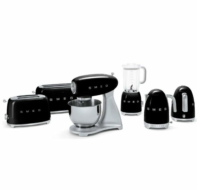 Планетарный миксер, мощность 0,8 кВт, объем чаши 4,8 л, Чёрный Smeg SMF02BLEU