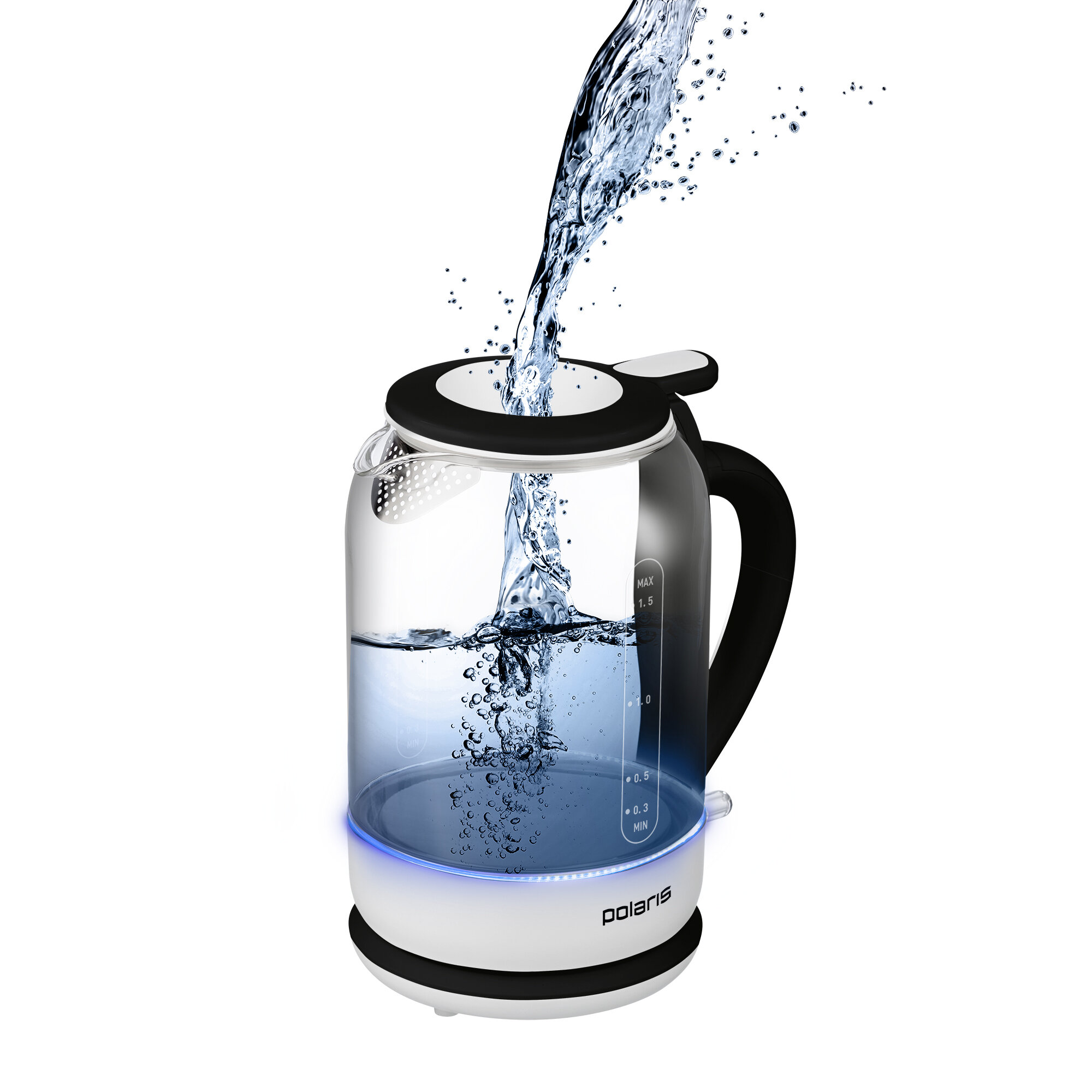 Чайник Polaris PWK1759CGL (1,5 л,1950Вт,корпус cтекло,"WATERWAY PRO",синяя подсветка) Белый-черный