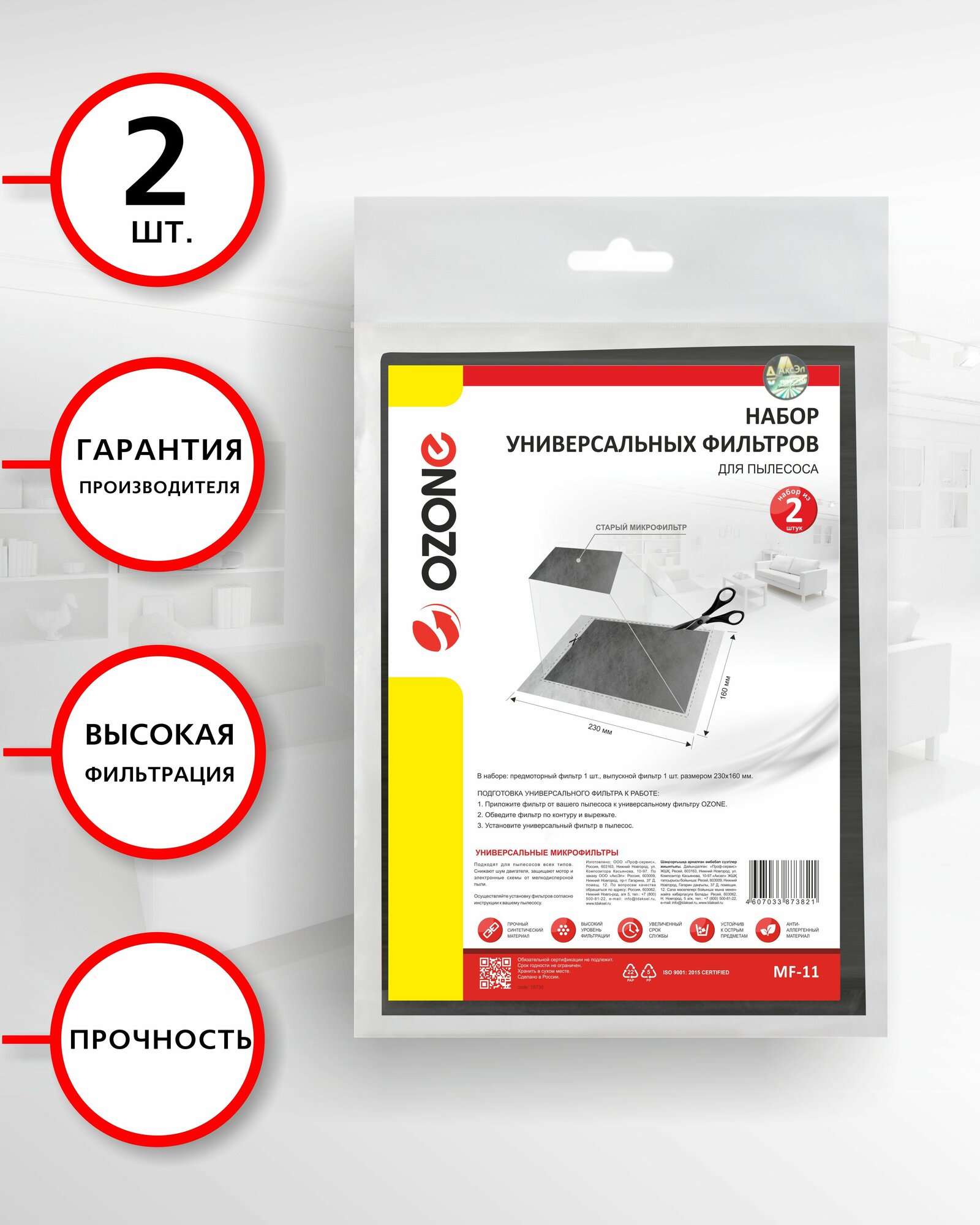 Набор универсальных микрофильтров 230X160 мм, предмоторный фильтр-1 шт., выпускной фильтр-1 шт., многоразовый моющийся, бренд: OZONE, арт. MF-11