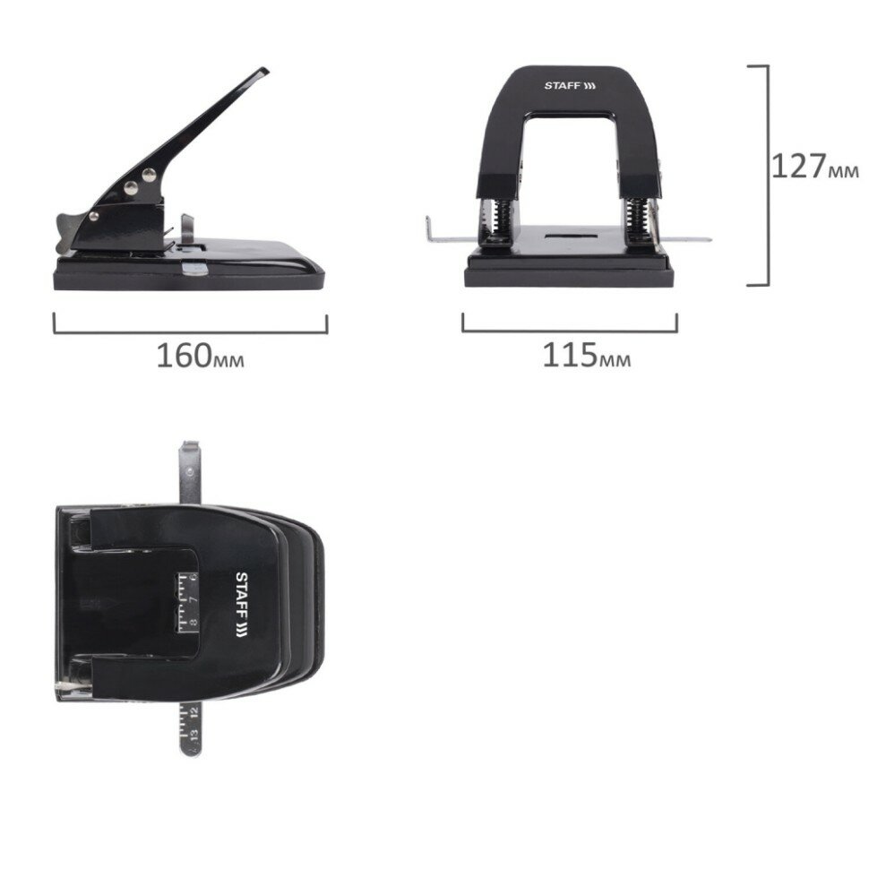 Дырокол металлический STAFF, до 30 листов, черный, 224650