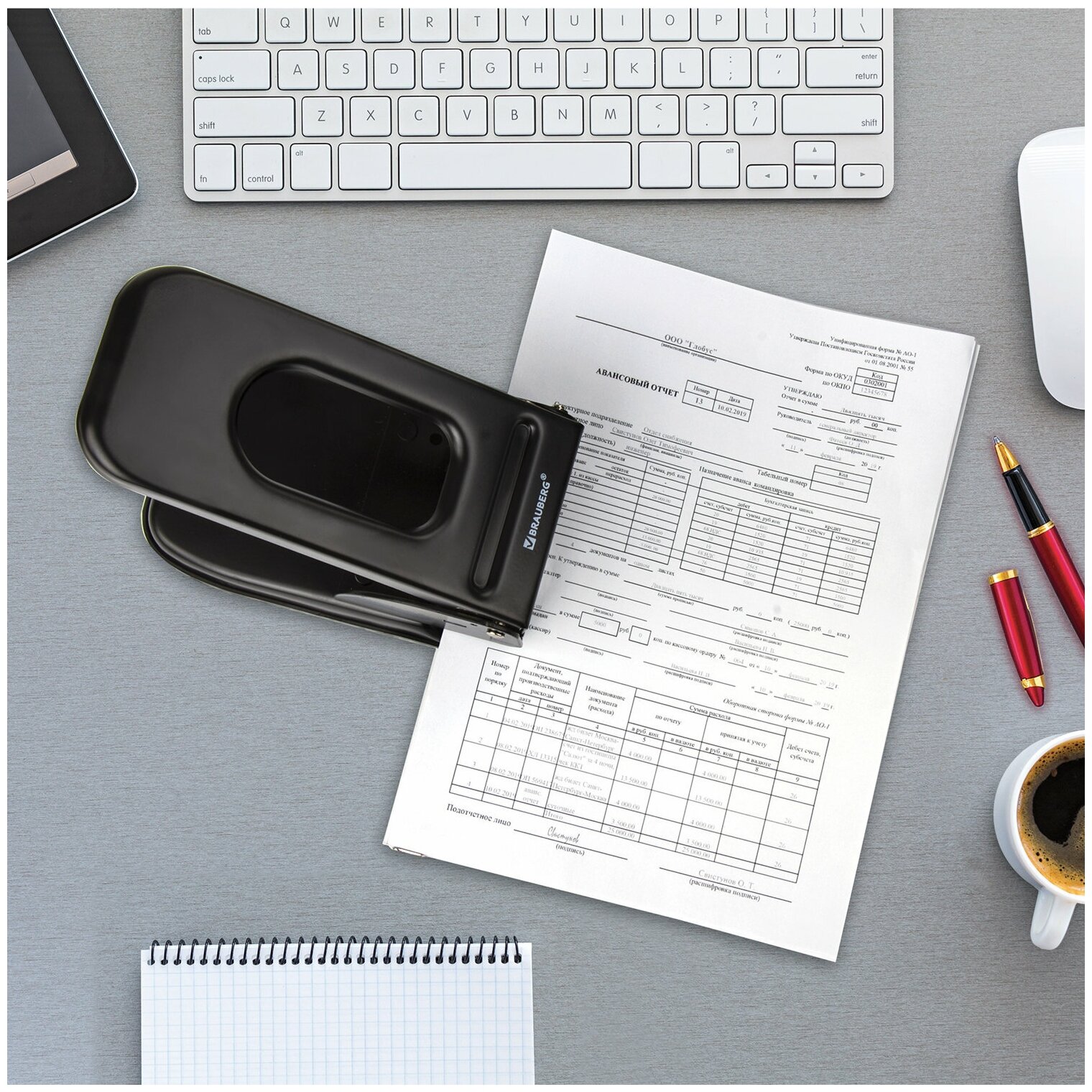 Дырокол Brauberg 226868 Riff, мощный на 60 листов, металлический, черный
